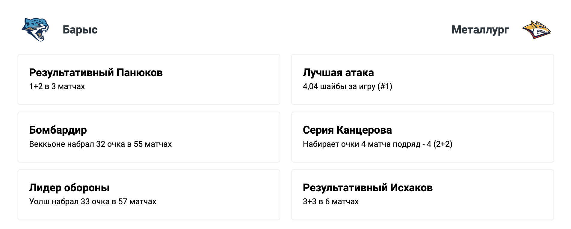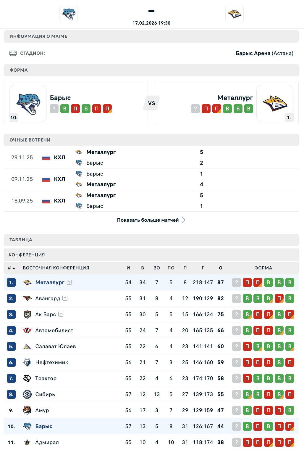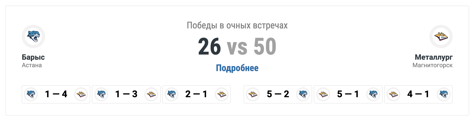- "Барыс" забивал менее 2 голов в 6 матчах между собой из последних 7-ми.